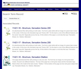 The Nebraska State Historical Society has done a nice job of cataloging a bunch of Sensation brochures found by searching on their website, but sadly they don't provide scans of the documents. All you can see is just text descriptions of them and a little image thumbnail.