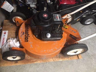 Hi all. I just purchased my first 2 Sensation mowers. One is a 21" model with a replacement B&S 3.5hp and the reversible handle. The other is a Commercial with a 4hp B&S I/C engine. The Commercial is on the work lift first. Nice solid machines!