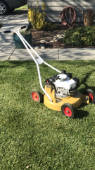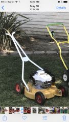 Hello. I'm new here, but wanted to share pictures of my mower. I was registered on this site a number of years ago, but it's been awhile! I had a nos Robins 4hp sitting around, so decided to throw it on. Runs and cuts great. I know it's not stock, me know what you think?